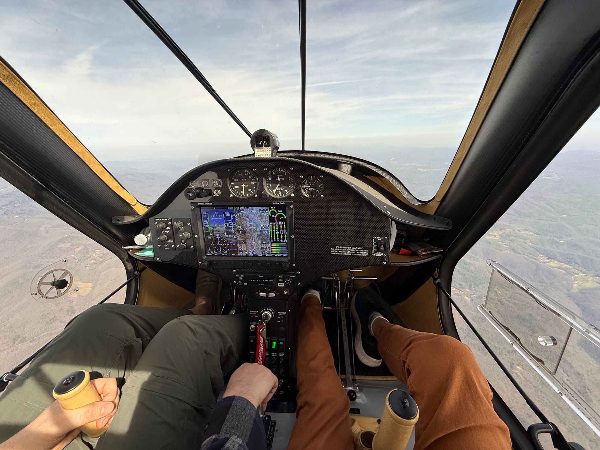 Ed. note: Jon's Dynon display has everything! A beautiful, readable, comprehensive collection of everything a pilot needs, right in front. (John’s hat in the upper picture reads “VERMIN”, an oblique reference to Garmin).