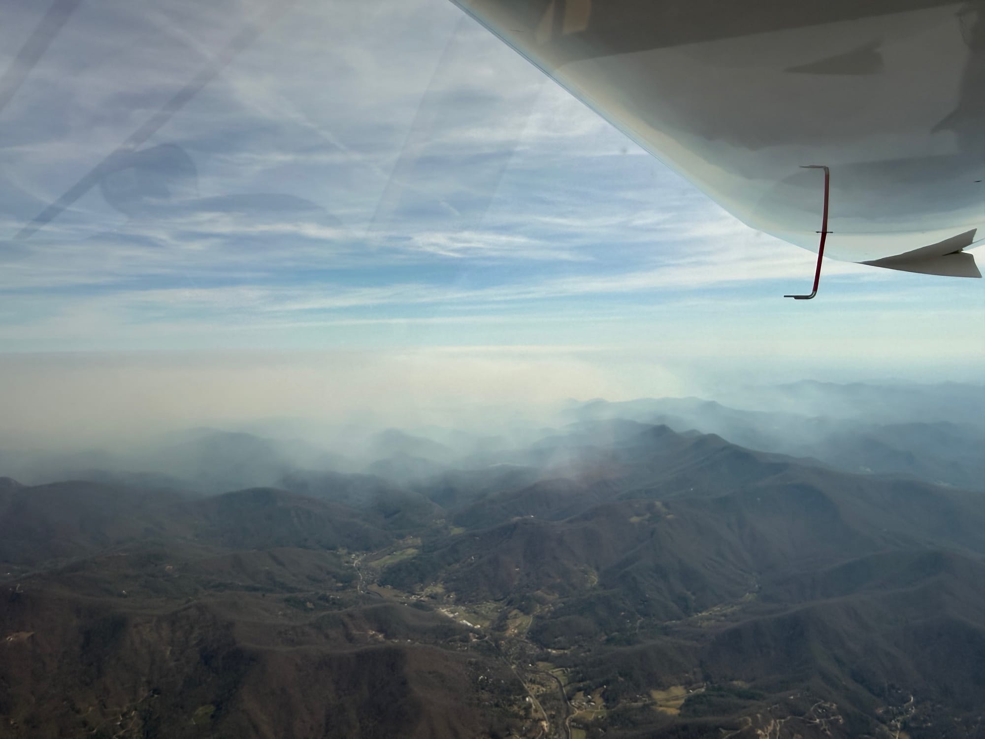 Miserable indeed, we had a 30kt headwind all the way down at 3500 and did not dare test the air over the mountains, so we went the long way around to CHA to the southwest. With light to moderate turbulence the whole way, we kept airspeeds modest. With the longer route, headwinds and derated cruise, travel time was 2 hours enroute. Wilson Air at CHA was accommodating. $20/night and $25 handling fee without minimum fuel purchase. Somehow they did not have tie downs available.